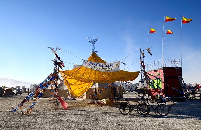 What a nice camp, what struck me were these ropes connecting each mast of the camp, designing delicately a shape of strenght. Bravo.