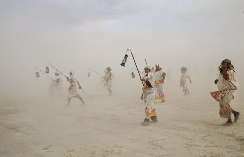 and the omnipresent dust, Burners, forward-looking citizens, come up with solo and communal camps, the fruition of year-long preparations along with sheer improvisation, to create an ephemeral architecture that will vanish leaving deep memories and no trace.