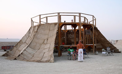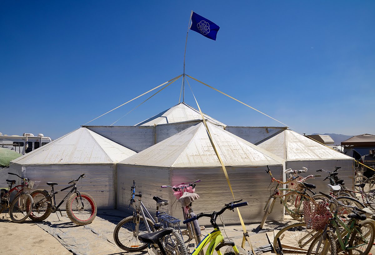 Hotel California Camp built with the space cubes and nodes engineered by artist Gregg Fleishman and Scott Mahoney of Lost Hotel fame